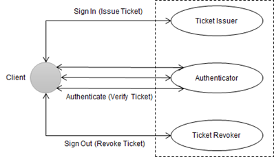 AuthenticationMiddleware中間件的整個認證過程涉及下圖的三種操作:認證票據的頒發、檢驗和撤銷。