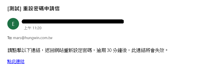 這是收到信件的畫面,點擊「點此連結」後,就會再導回網站。