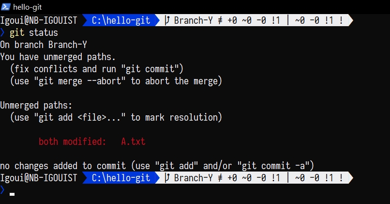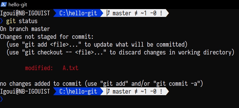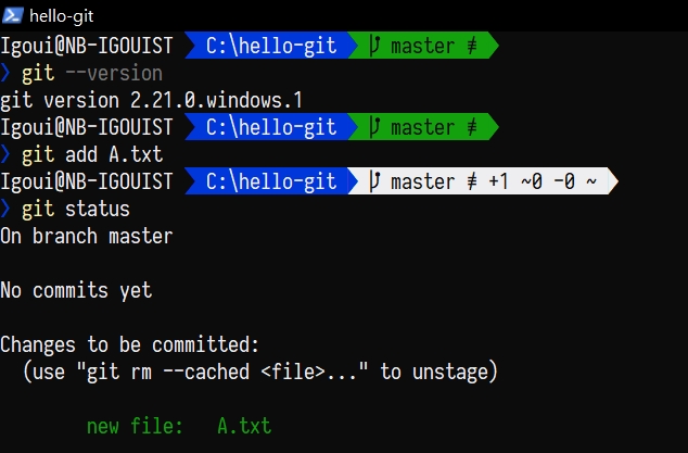 我們先到 hello-git 資料夾裡,新增一個 A.txt