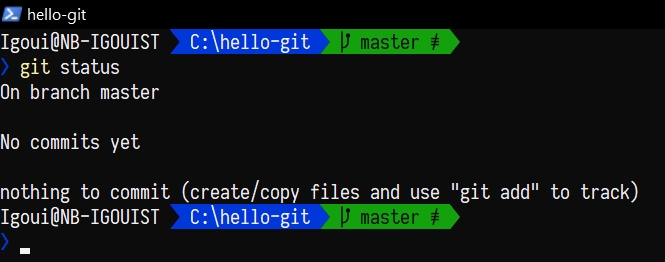 可以看到我們現在在 Master 分支,並且還沒有 Commit 任何東西。這兩個部分我們等等就會說明,現在就讓我們按照它的提示,來把檔案丟進去給 Git 試試吧。