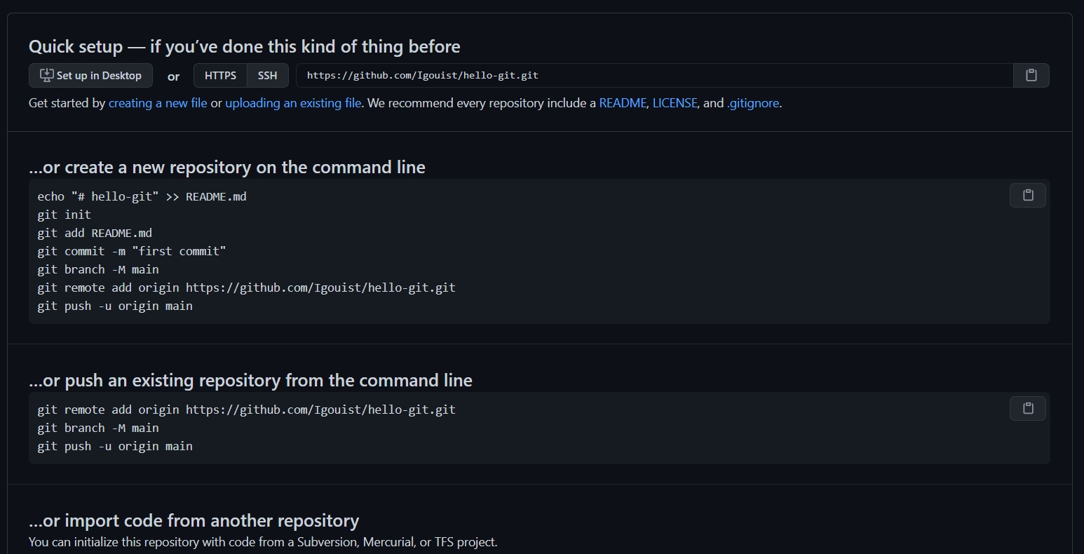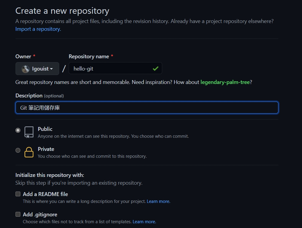 結尾的網址,我們接著就要使用這個網址來將剛剛的 hello-git