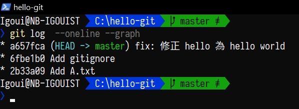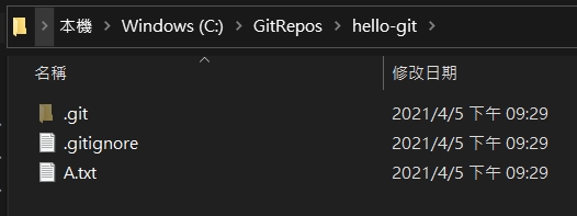 同時,我們也能在原本的 hello-git 資料夾中,發現多了一個 .git