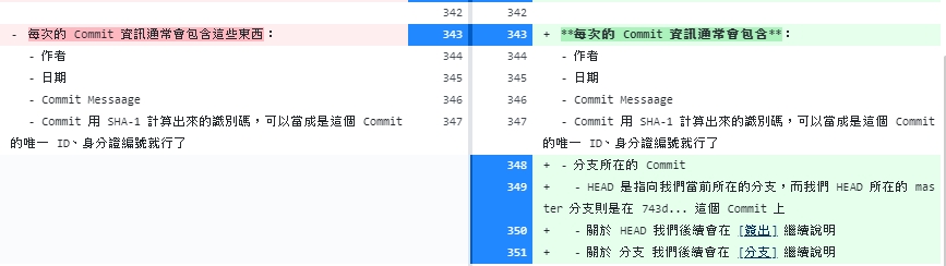 其實不知道每一份實際上改了哪裡,要復原某一段的時候要找半天,不如直接重寫一段