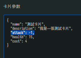 假設我們除了怪獸卡以外的卡片,例如魔法卡之類的,都不應該有攻擊力,就可以這樣寫: