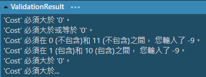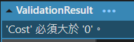 這樣在驗證完的 ValidationResult 裡,就會變成我們指定了錯誤訊息了。