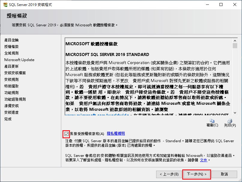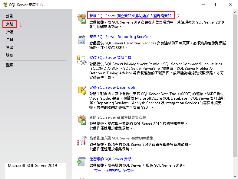 SQL Server 2019 Standard 繁體中文標準版安裝