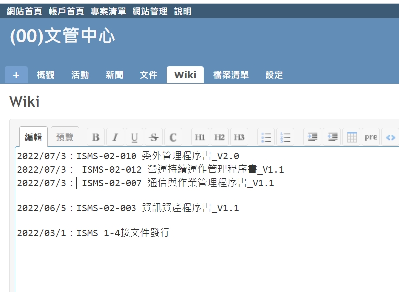 本篇在分享的是利用Redmin平台的功能來建立適合ISMS的文管中心。