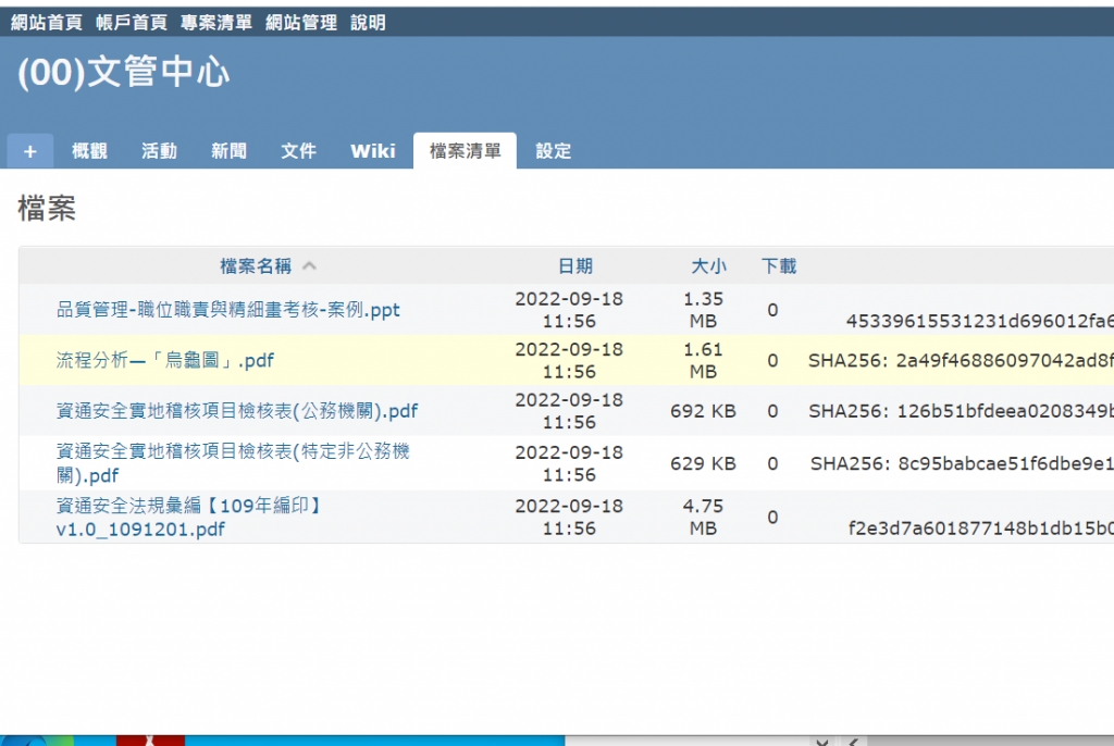 檔案清單比較像是非正式管理的常用文件下載,可以當作常用檔案下載的分享區。 圖09