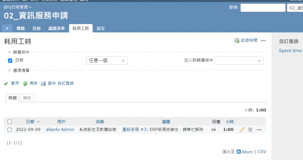 自訂欄位清單:請參考系列文Day 6-[Redmine]自行建立及維護表單