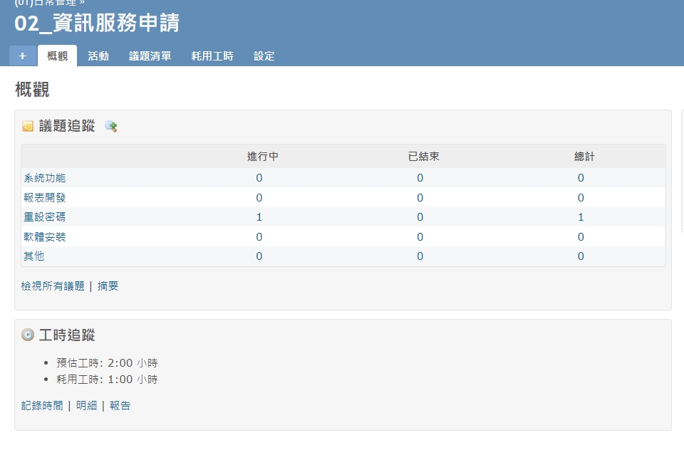 【追蹤標籤】:系統功能、報表開發、重設密碼、軟體安裝、問題詢問、其他
