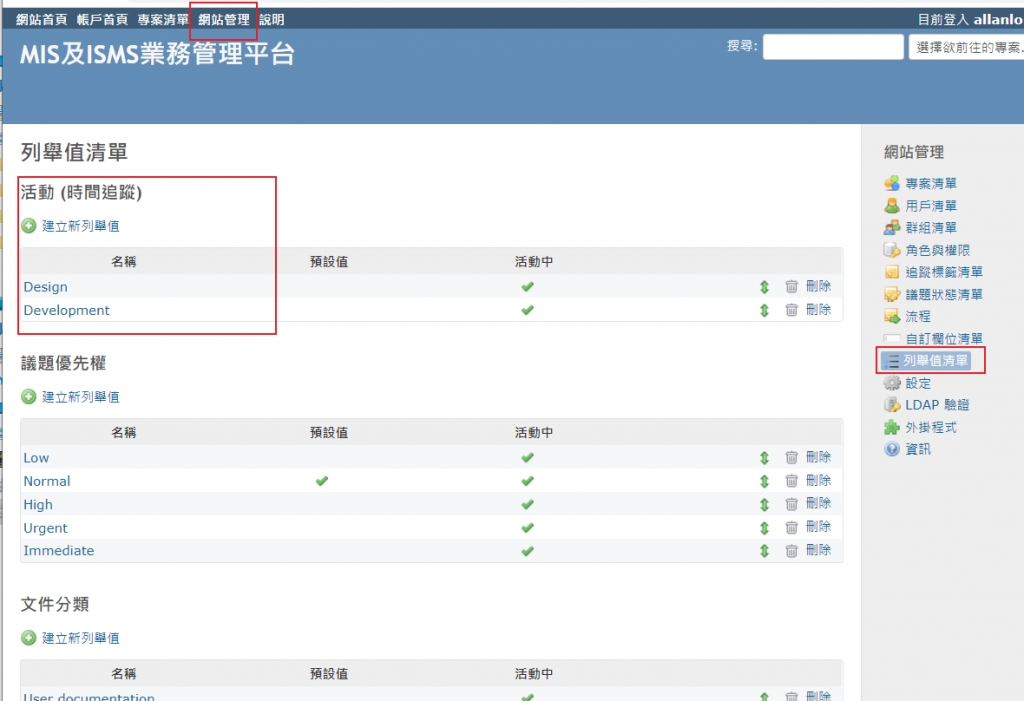 [網站管理]/[列舉值清單] [活動-時間追蹤]