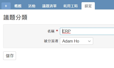 【補充說明】:Redmine議題的[分類]功能,能預設指派該分類的負責人,例如ERP的指定負責人是Adam Ho (圖1、2)